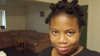 Currently,my hair is not in any style.I have an old bantu knot out from Sunday that I have been keeping under a cap to protect my ends from the cold.I also hennaed two weeks ago,and I should have taken pictures,but I didn't..(sad face).I will be doing it again and I will definitely take pictures then!